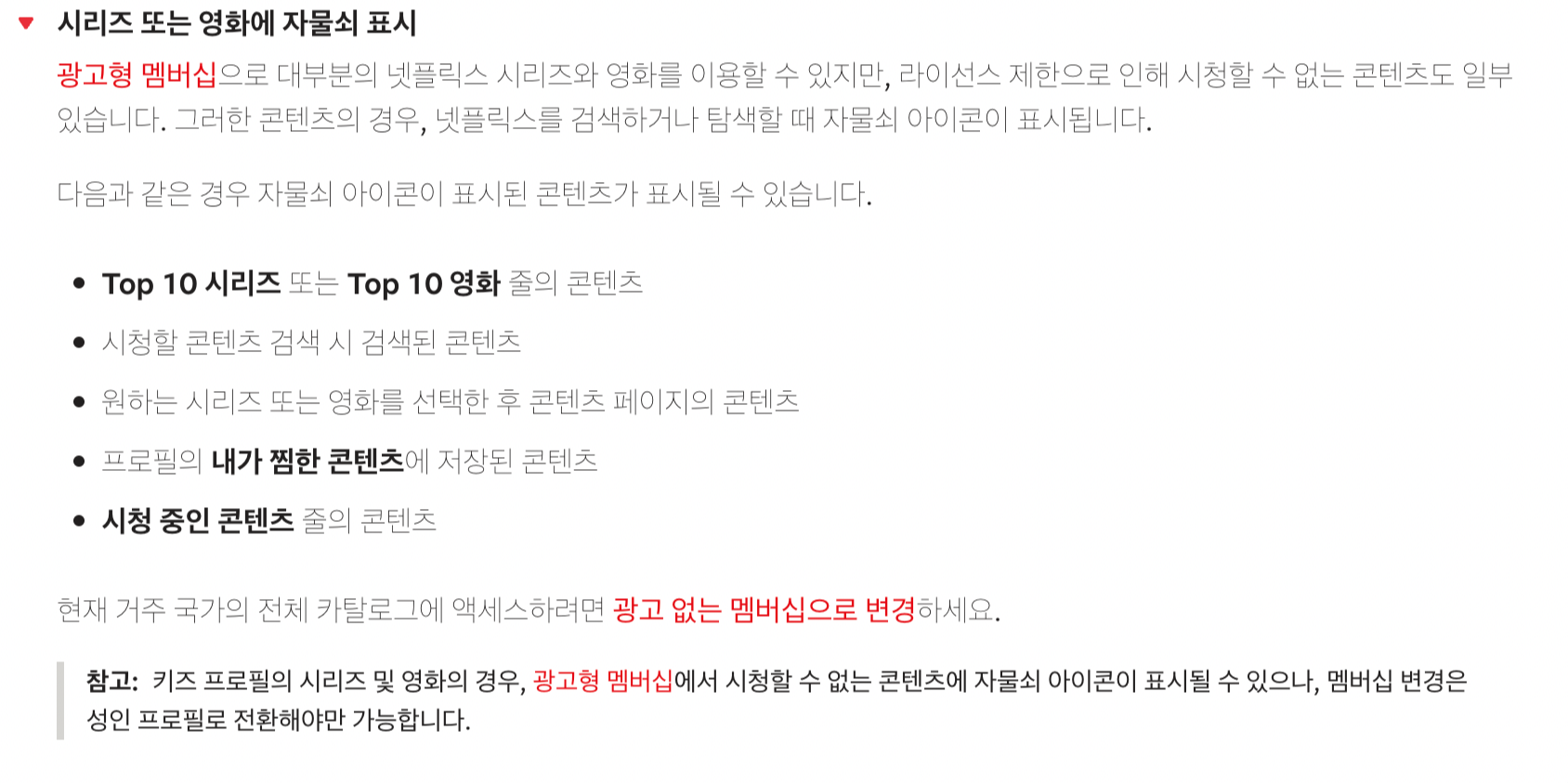 자세히 읽어보시면 Top 10 시리즈 또는 Top 10 영화가 제한이 걸린다는 뜻은 아닙니다.