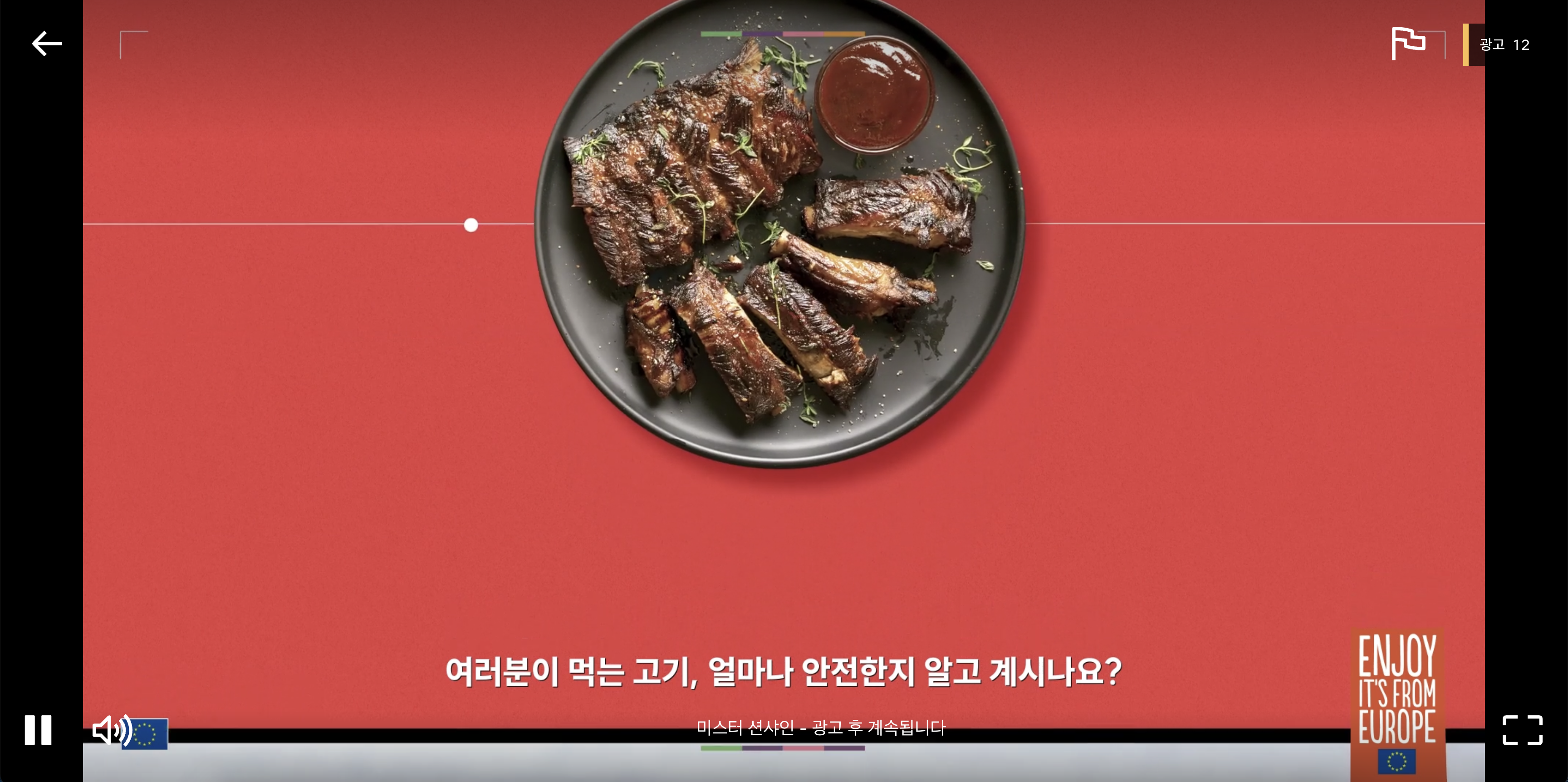 노란색 재생바 근처로 임의로 재생시간을 변경했는데 광고가 뜨는 모습입니다.