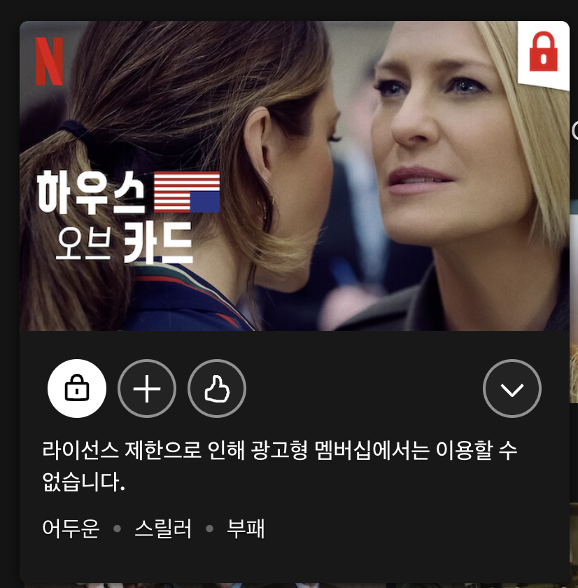 D.P. 시즌 2, 수리남, 더 글로리 같은 넷플릭스 오리지널 영상은 자물쇠가 달린 것이 없고 한국 드라마도 여러 개 찾아보았으나 자물쇠가 달려 있지 않았습니다.