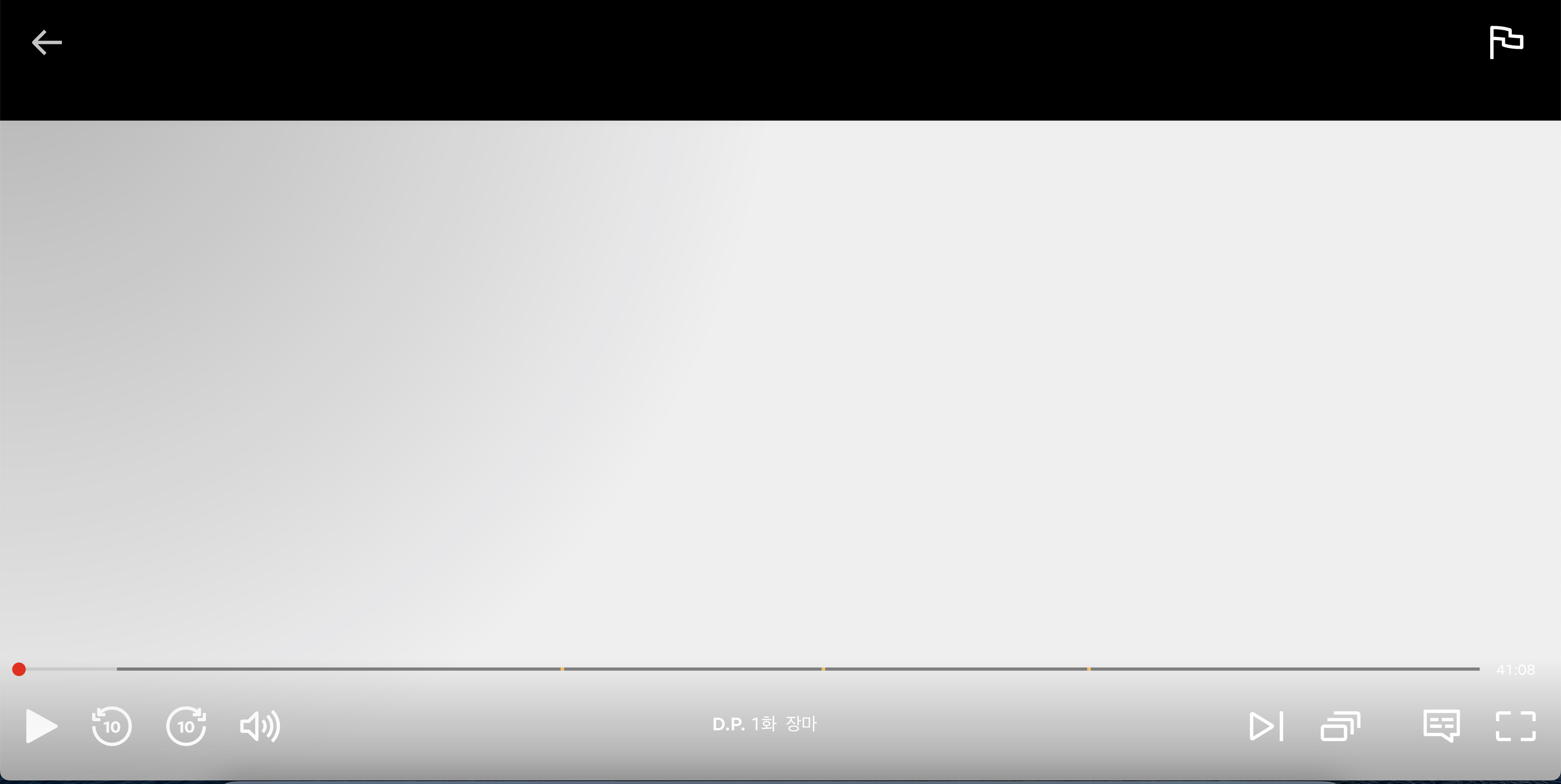 D.P. 시즌 2 1화의 경우 40분 정도이니 광고가 나오는 노란색 재생 바가 3개 있는 모습을 볼 수 있습니다.