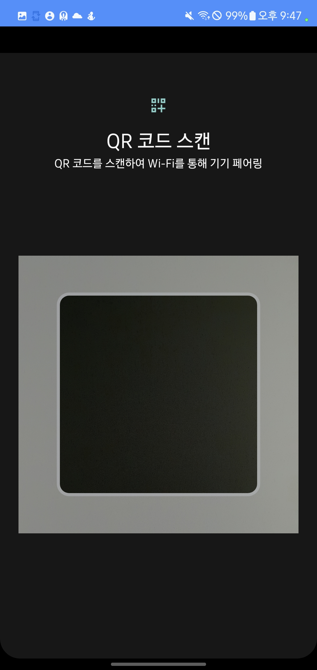 위의 이미지와 같이 QR코드가 뜹니다. 아까 무선 페어링 - QR코드로 기기 페어링을 해준 휴대폰으로 이 QR코드를 찍으면 됩니다.