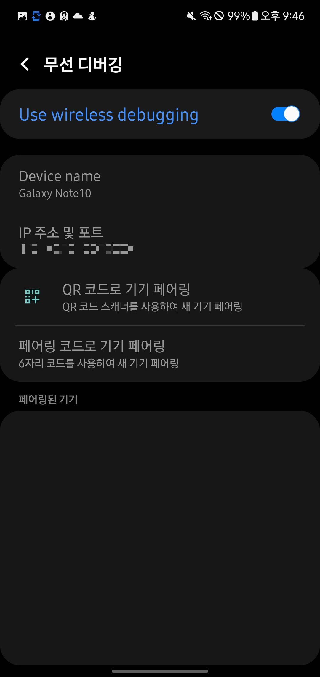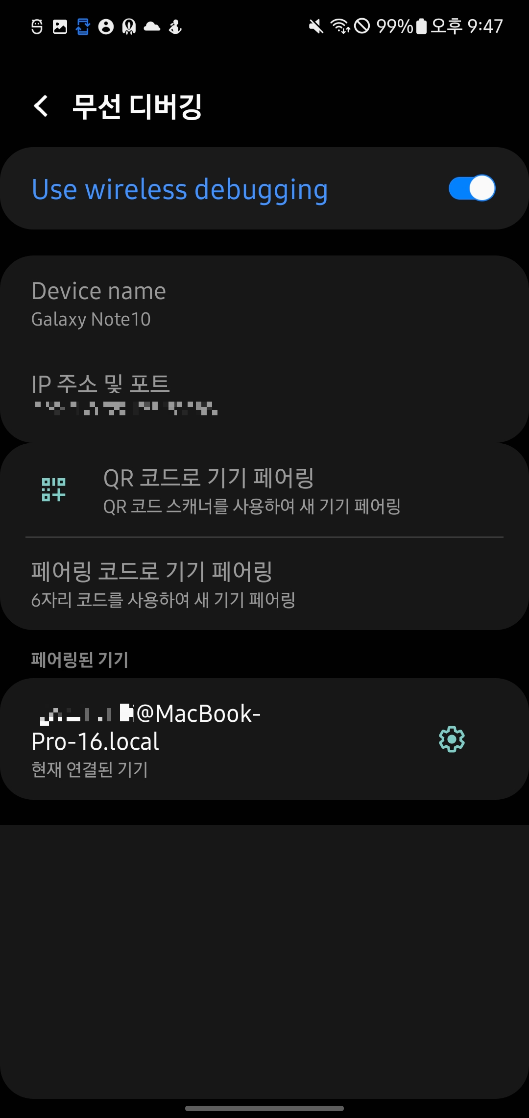 한번 등록해 두면 휴대폰에서도 기록이 남아, 나중에 휴대폰에서 무선으로 디버깅만 눌러도 자동으로 연결이 됩니다.