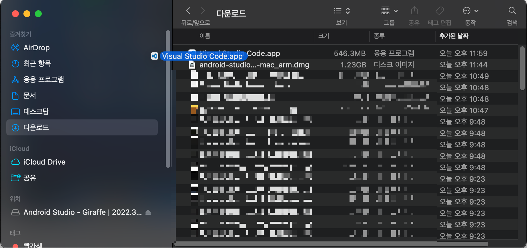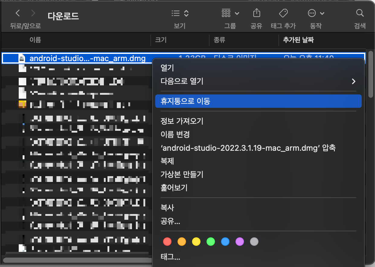 안드로이드 스튜디오 같은 경우는 dmg 파일로 설치할 수 있습니다.