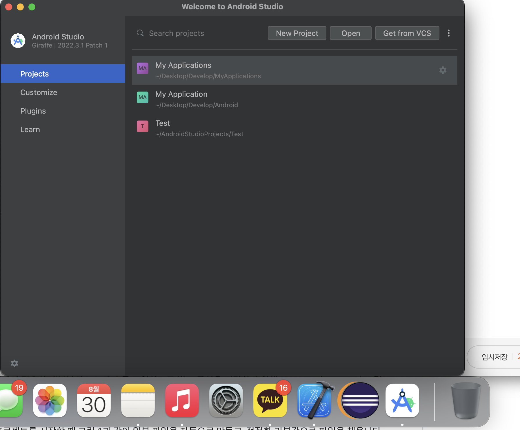 독바에는 있는 안드로이드 스튜디오가 런치패드에는 없는 것을 볼 수 있습니다.