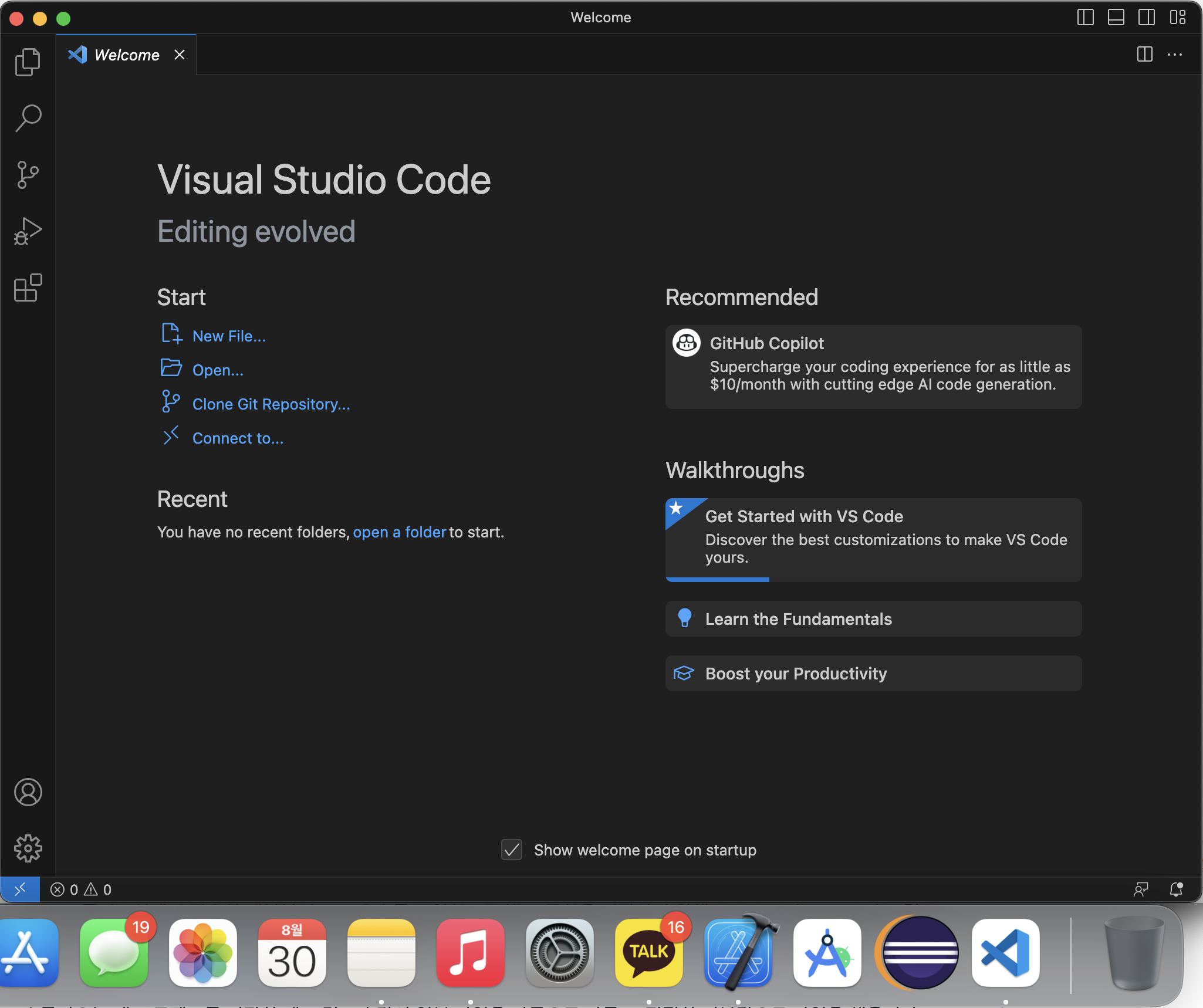 비슷한 콘셉트로 가기 위해 Visual Studio Code.app을 다운로드하여 설치했습니다.