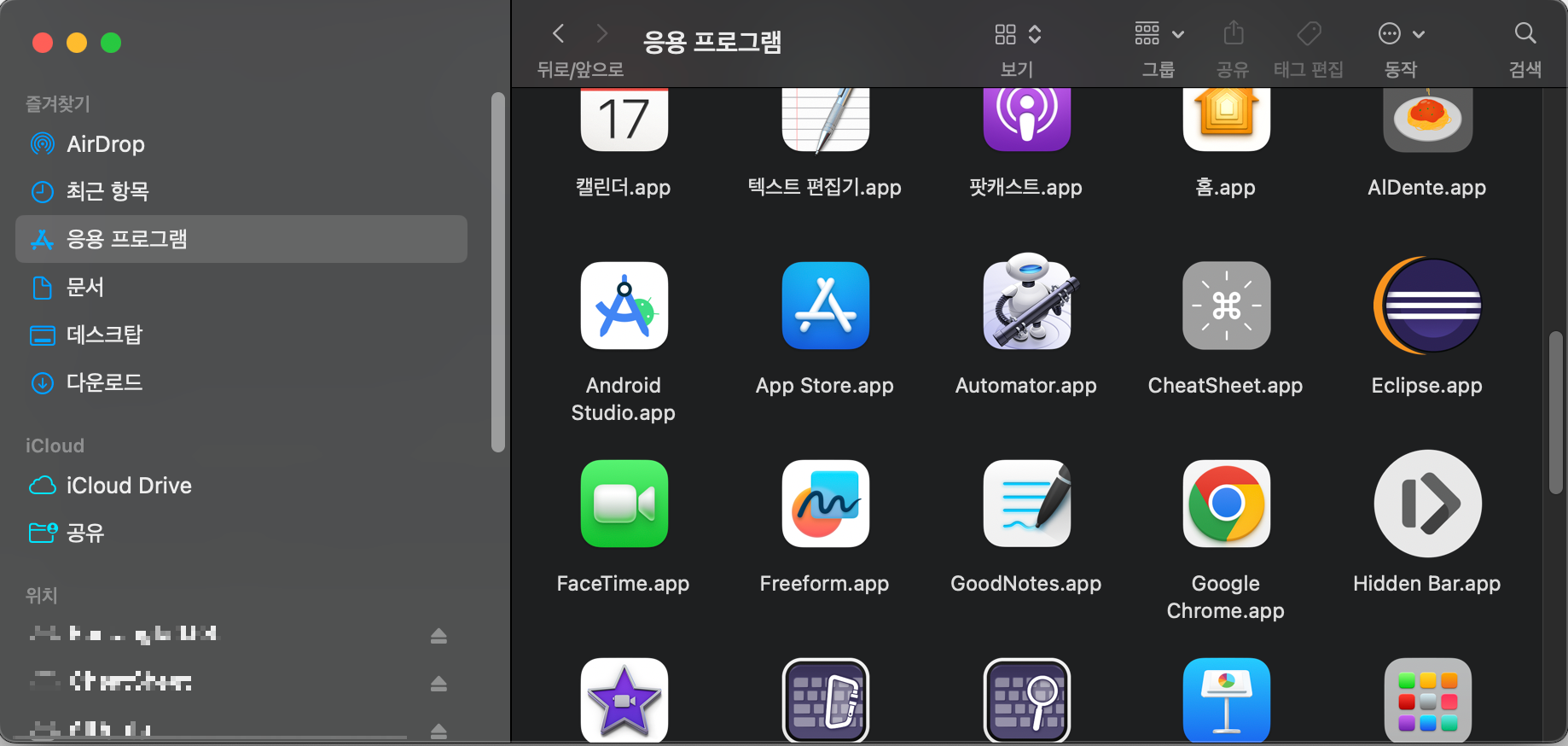 App Store에서 설치한 앱들은 전부 런치패드에 있으니 지나가고, 인터넷에서 다운로드한 파일에 대하여 알아보겠습니다.