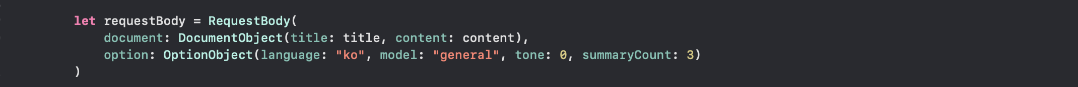 option: OptionObject(language: "ko", model: "general", tone: 0, summaryCount: 3)