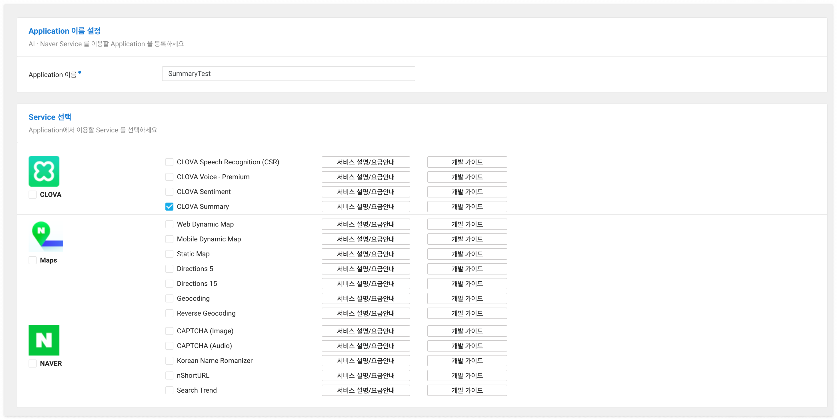 그리고 저희는 CLOVA Summary 만 사용할 것이라 Summary만 체크해두었습니다.