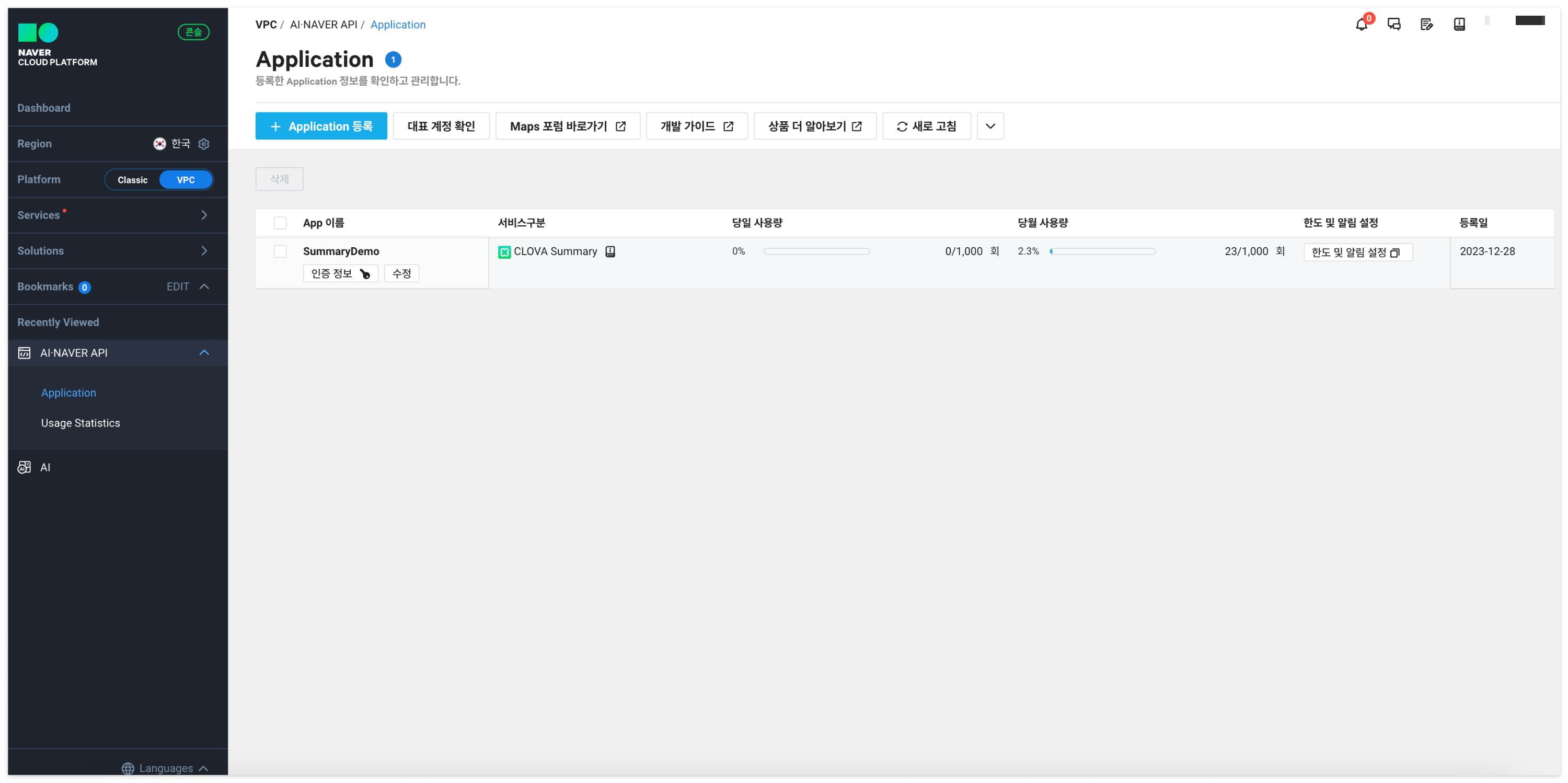 맨 밑 이용신청을 통해 Naver CLOVA AI Summary 기능을 사용할 수 있습니다.