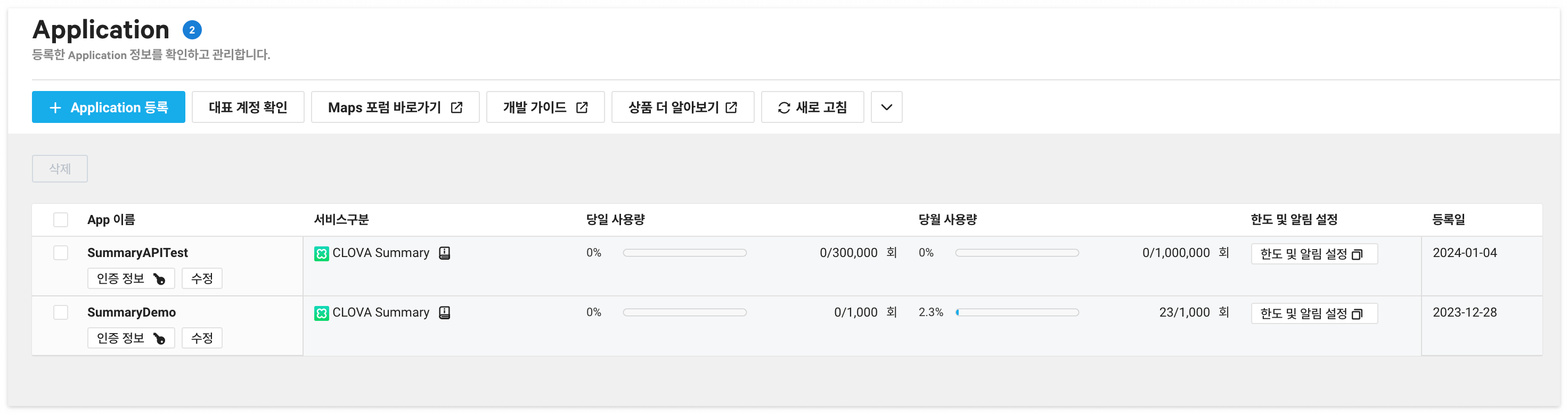 APIKeyID와 APIKey는 아까 한도를 설정한 인터넷 페이지에서 인증정보를 눌러서 확인할 수 있습니다.
