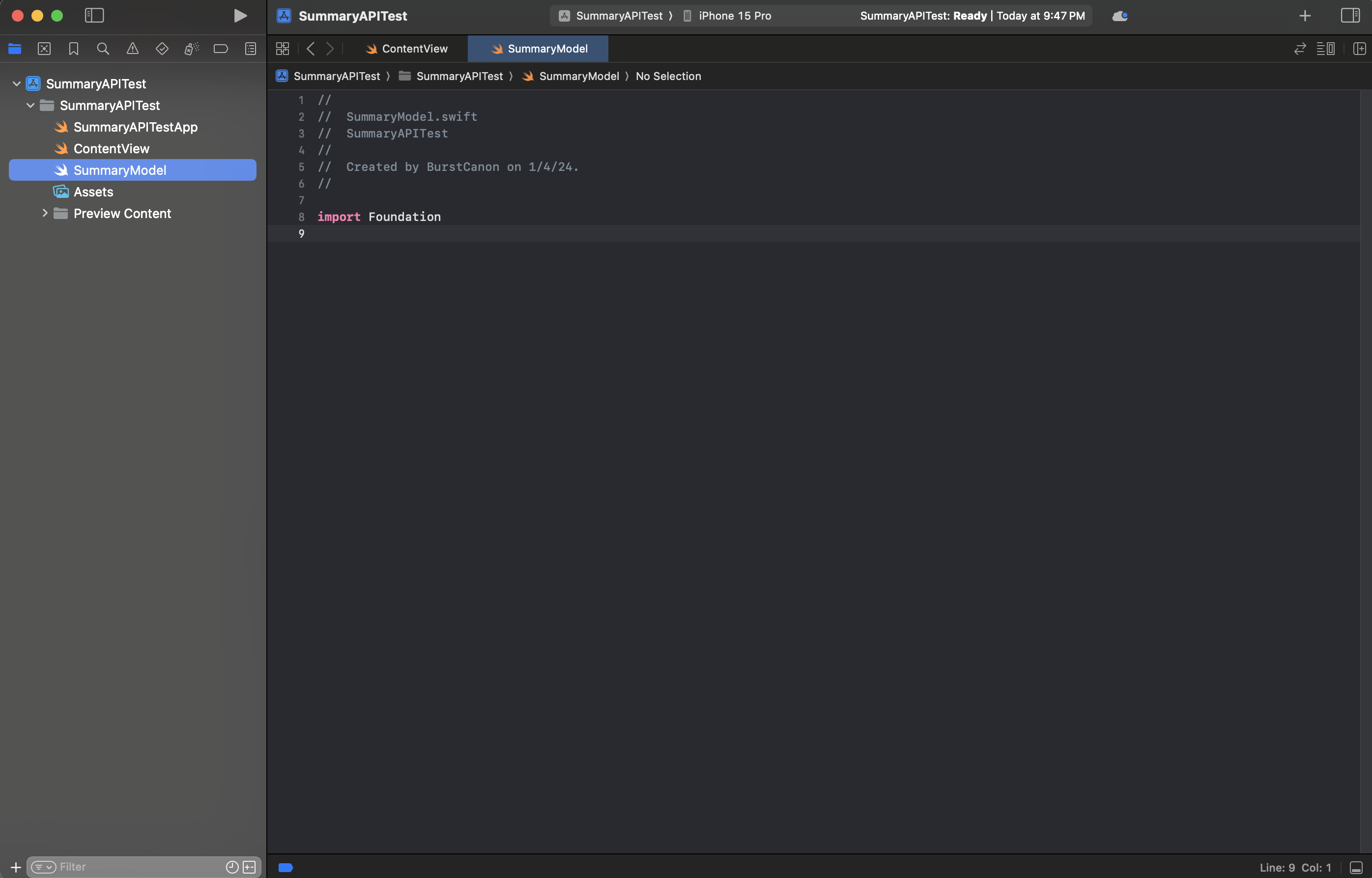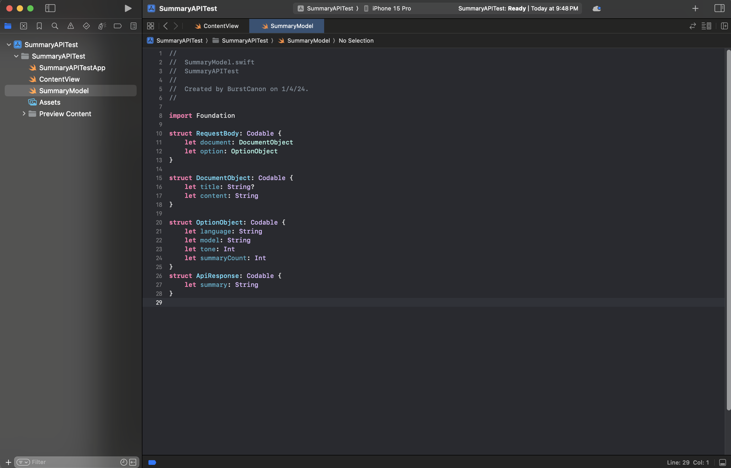 저는 따로 SummaryModel이라는 Swift 파일을 만들어서 따로 작성하였습니다.