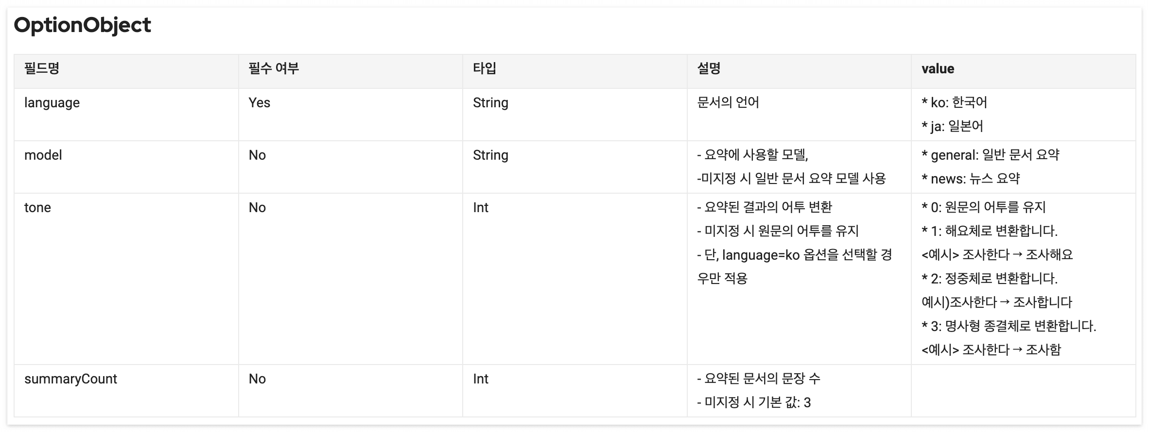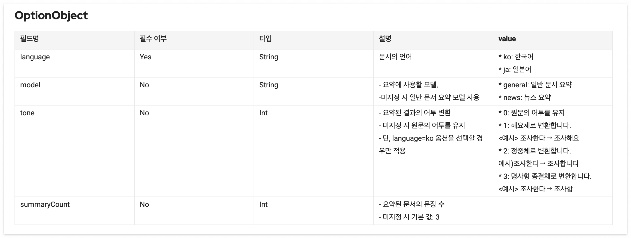 option: OptionObject(language: "ko", model: "general", tone: 0, summaryCount: 3)