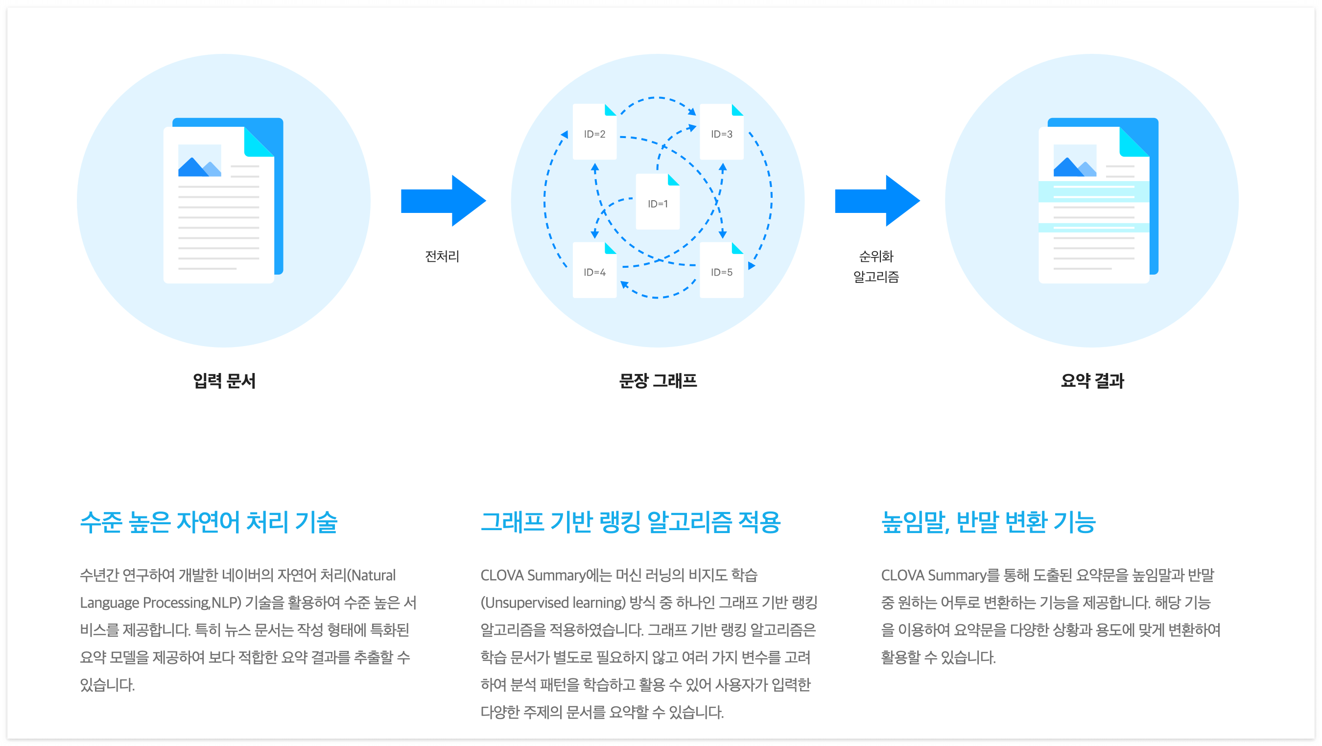 Naver CLOVA AI summary는, 문서에서 가려낸 주요 내용을 기반으로 전체 내용을 간결하게 요약하는 API입니다.