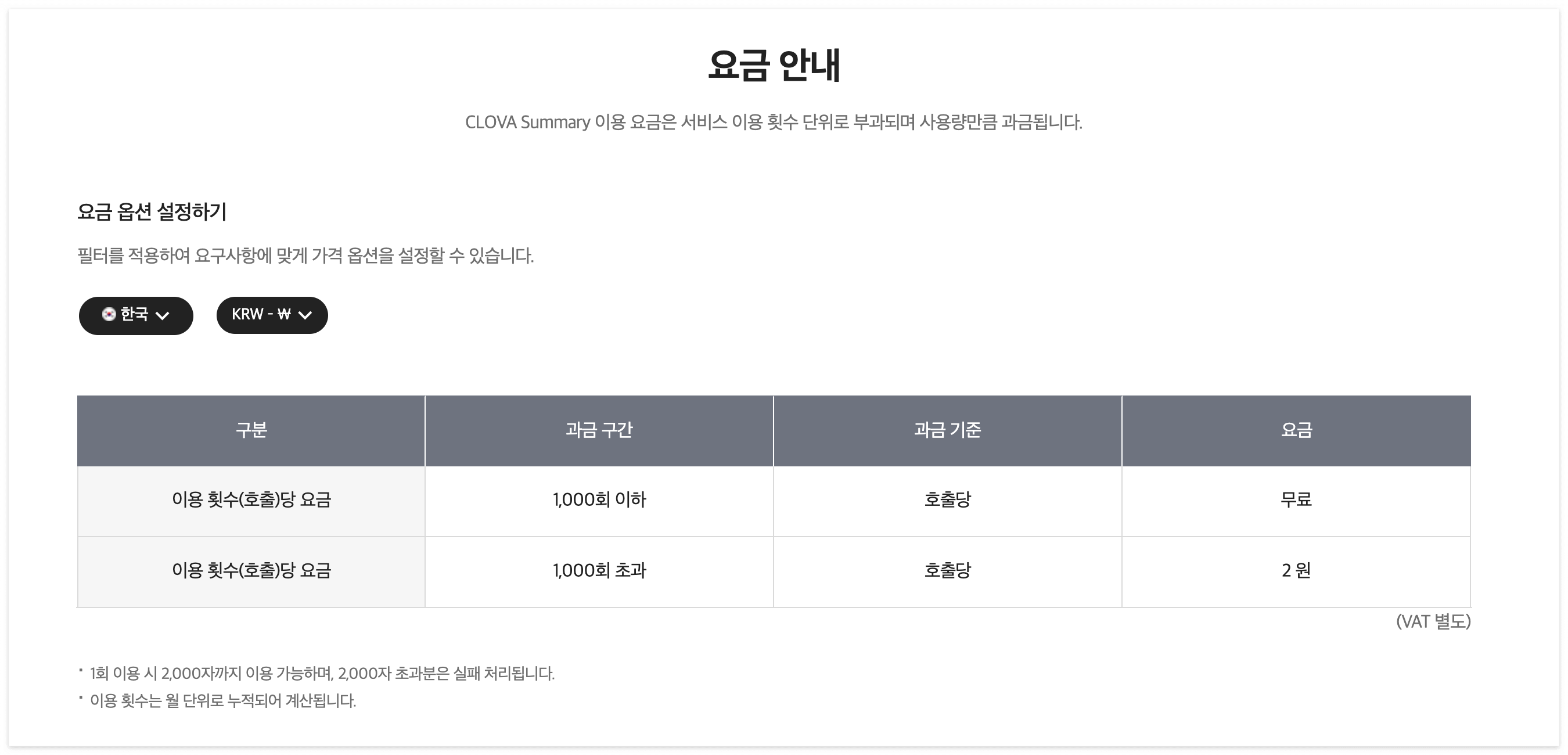 요금 안내 사항도 존재하네요. 매달 1,000회 이상 호출하게 될 시에는 요금이 부과됩니다.