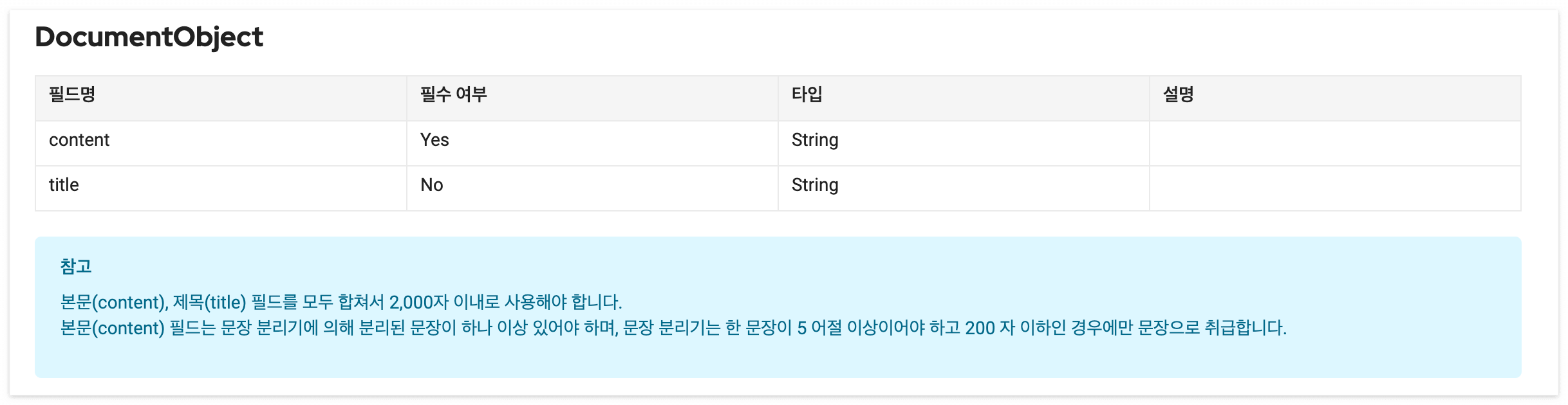 document, option이라는 요청바디가 필요하고 이것들은 DocumentObject, OptionObject로 세분화되어있습니다.