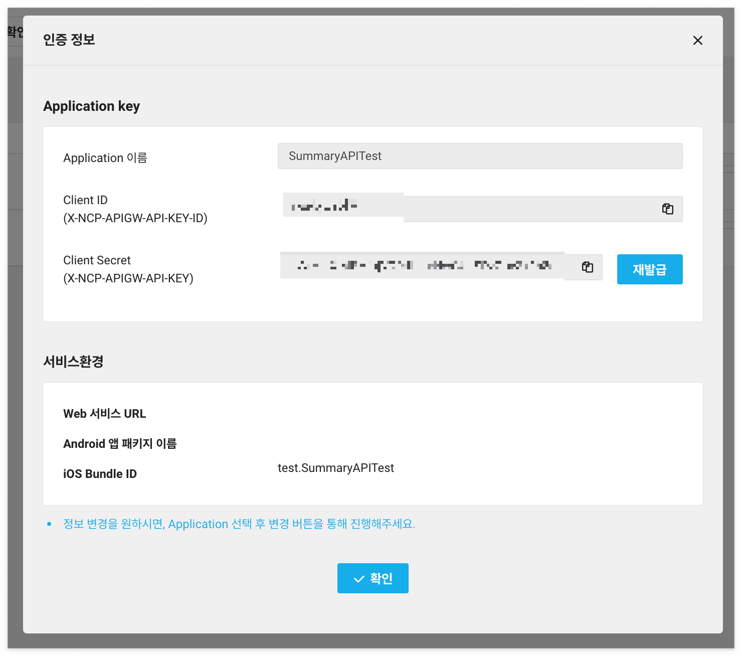 APIKeyID와 APIKey는 아까 한도를 설정한 인터넷 페이지에서 인증정보를 눌러서 확인할 수 있습니다.