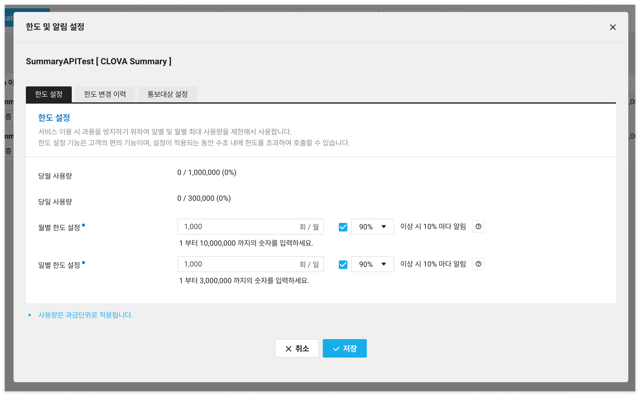 이 화면에서 바로 한도 설정을 할 수 있으니까 바로 설정해봅시다.