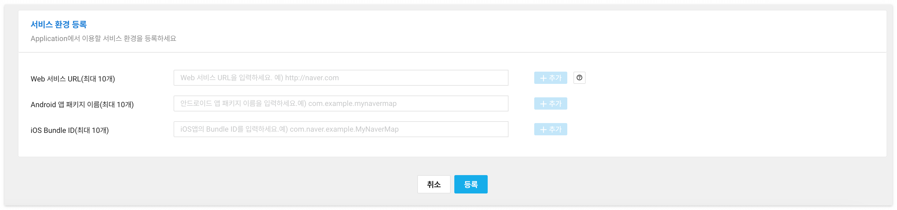 서비스 환경 등록 화면입니다.