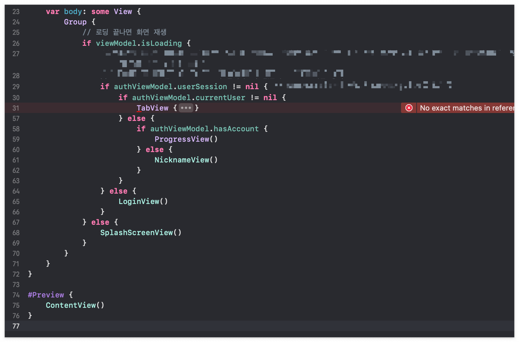 '아주 간단한 무언가를 놓쳐서 발생한 에러'라고 생각해서 저는 ContentView를 다시 살펴봤습니다.