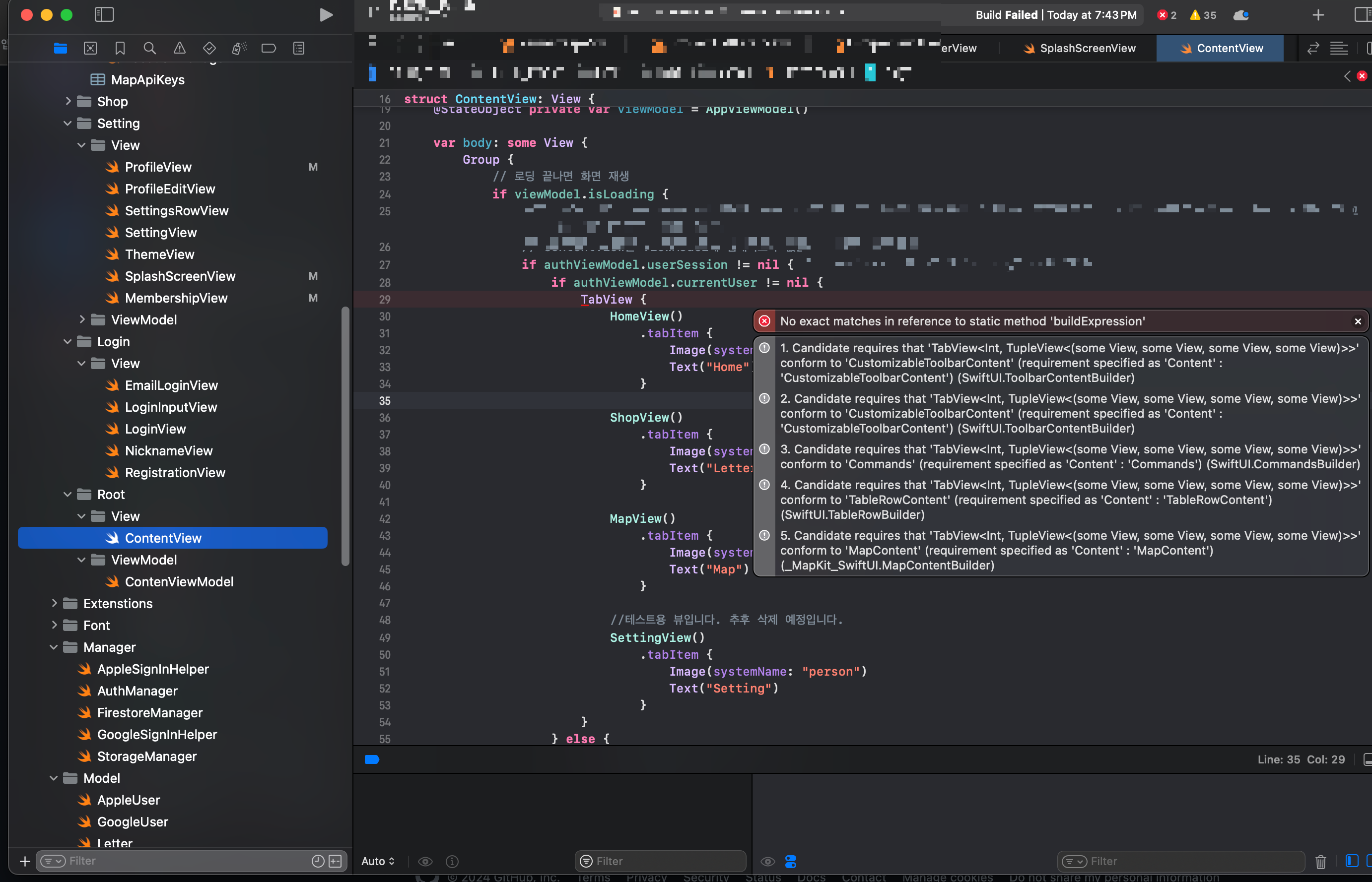오늘은 iOS 앱 개발 하면서 Xcode에서 발생한 'No exact matches in reference to static method 'buildExpression'' 에러 관해 글을 작성해 봅니다.