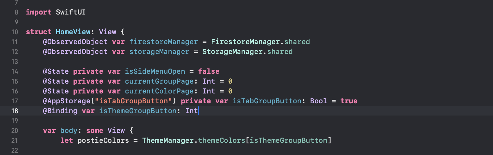 홈뷰에서 선언한 isThemeGroupButton의 값을 Binding으로 들고 와서 색깔이 필요한 곳에 뿌려주는 식으로 코드를 작성했습니다.